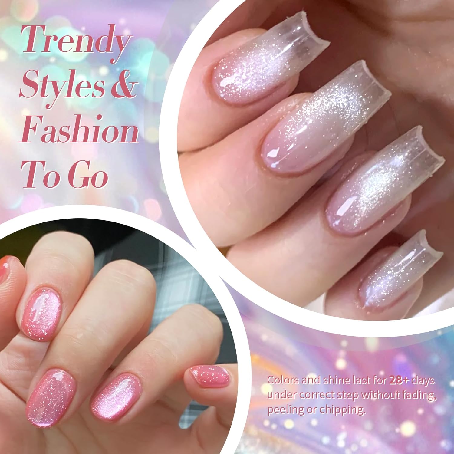 Born Pretty Magnetic Gel Nail Polish Pastel Cat Magnetic Eye Gel Polish Glitter Shimmer Auroras Magnetic Gel Nail Art Manicure Kit 6PCS