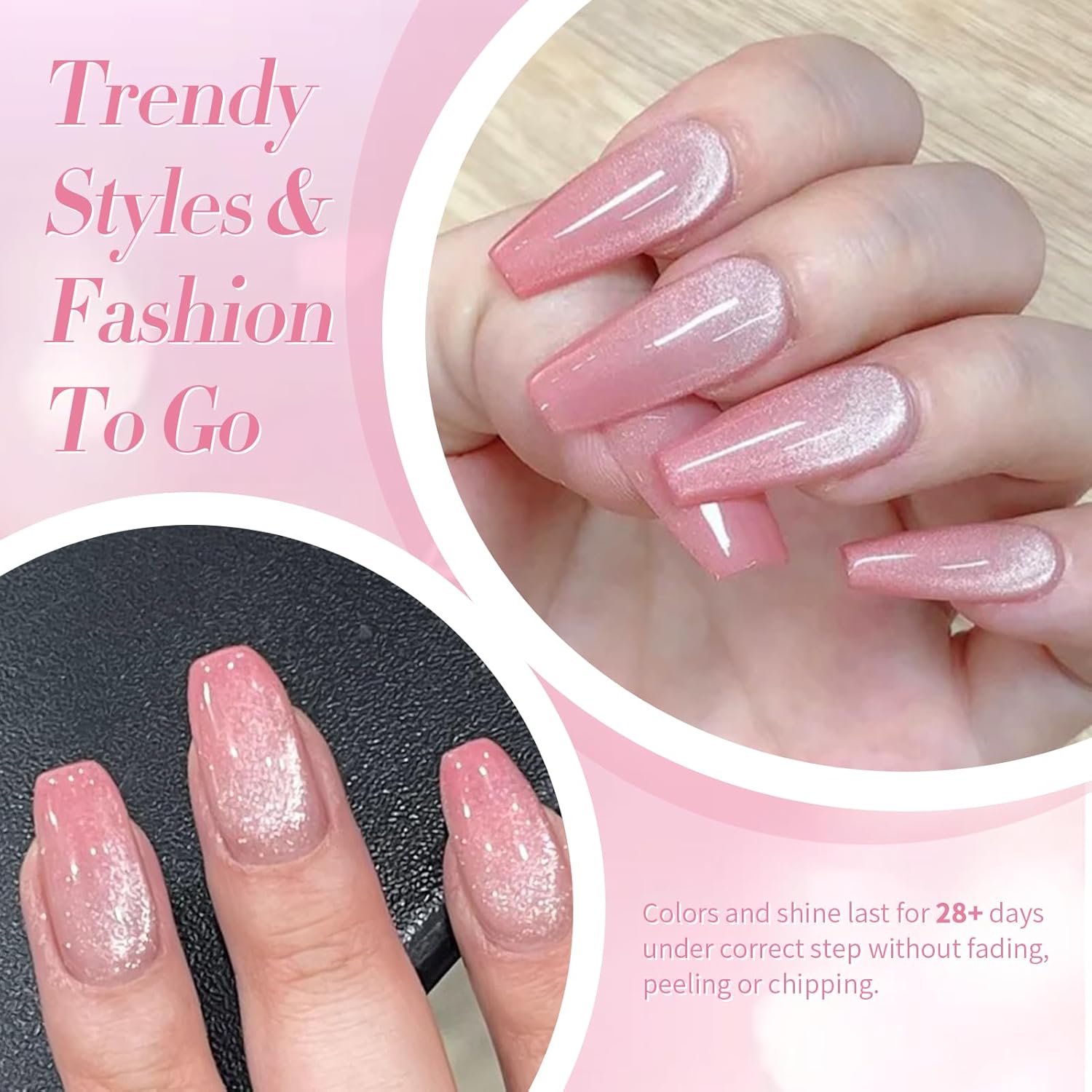 - EASY APPLICATION AND GOOD TENACITY: The series of cat magnetic eye gel nail polish is long lasting for 21+ days with perfect shine under proper application - With base gel top coat under the full application process.High durability and intense pigmentation makes it stay last longer and brings you brilliant shine finish.