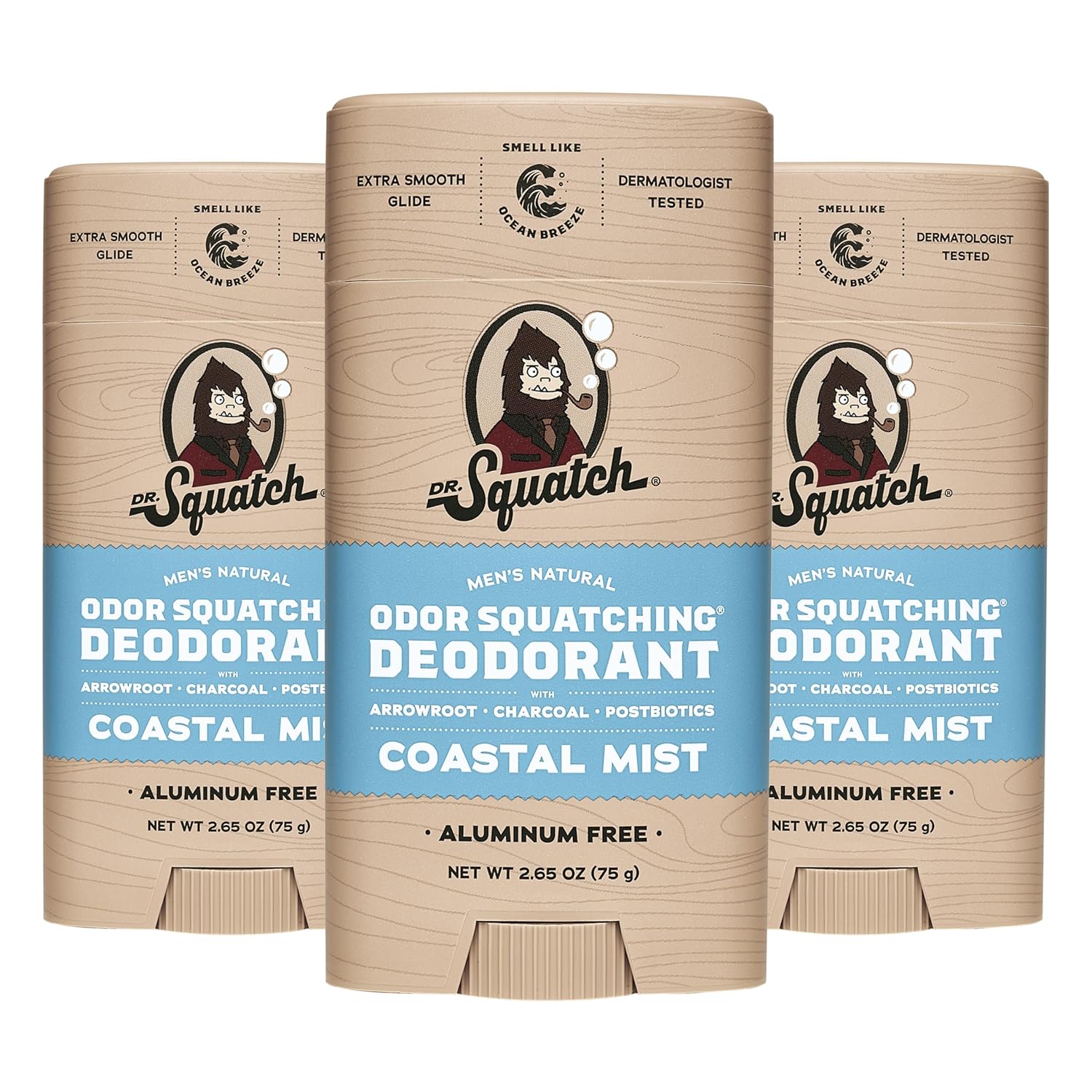 Dr. Squatch Natural Deodorant for Men - Odor-Squatching Aluminum Free - Coastal Mist (2.65 oz, 3-Pack)