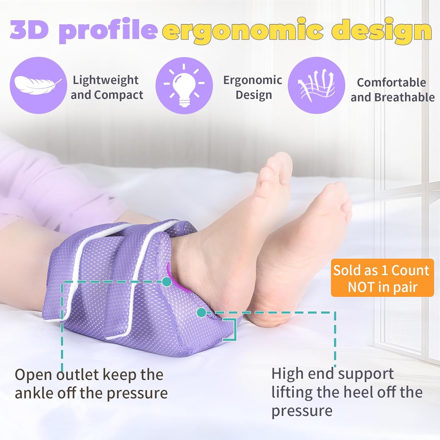 - [Prevent pressure sores]:Ehucon 3D heel protectors are designed for bedridden patients, lifting ankles to separate the heel from the bed sheet to prevent heel pressure and sores. As a pressure ulcer cushion for patients with ulcers or heel pain, the heel protector boot-foot pillow for bed reduce pressure and friction, relieving pain and enhancing comfort.