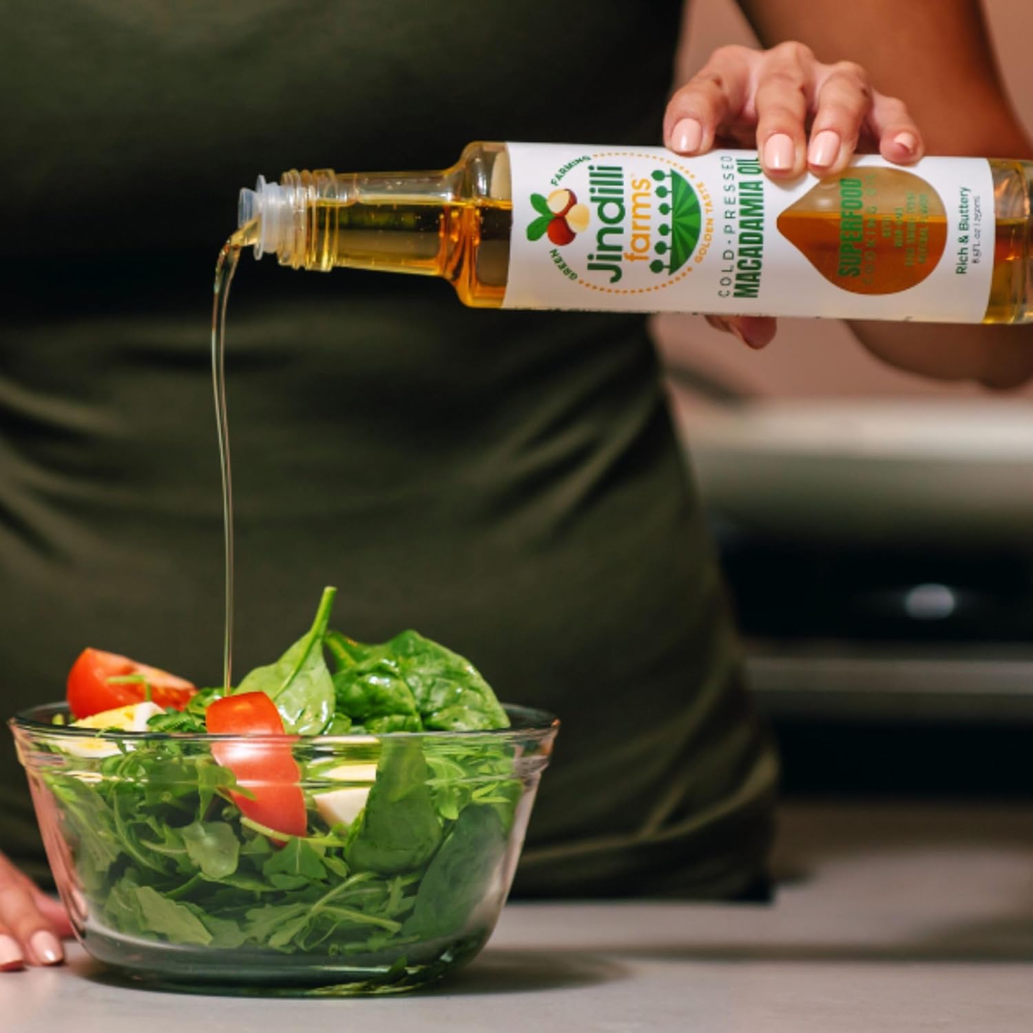 Jindilli Farms Macadamia Nut Cooking Oil- Australian Pure Cold Pressed Oil, Unrefined, Natural, High Smoke Point for Frying, Non GMO, Vegan, Keto Friendly and Gluten Free (8.5 fl oz)