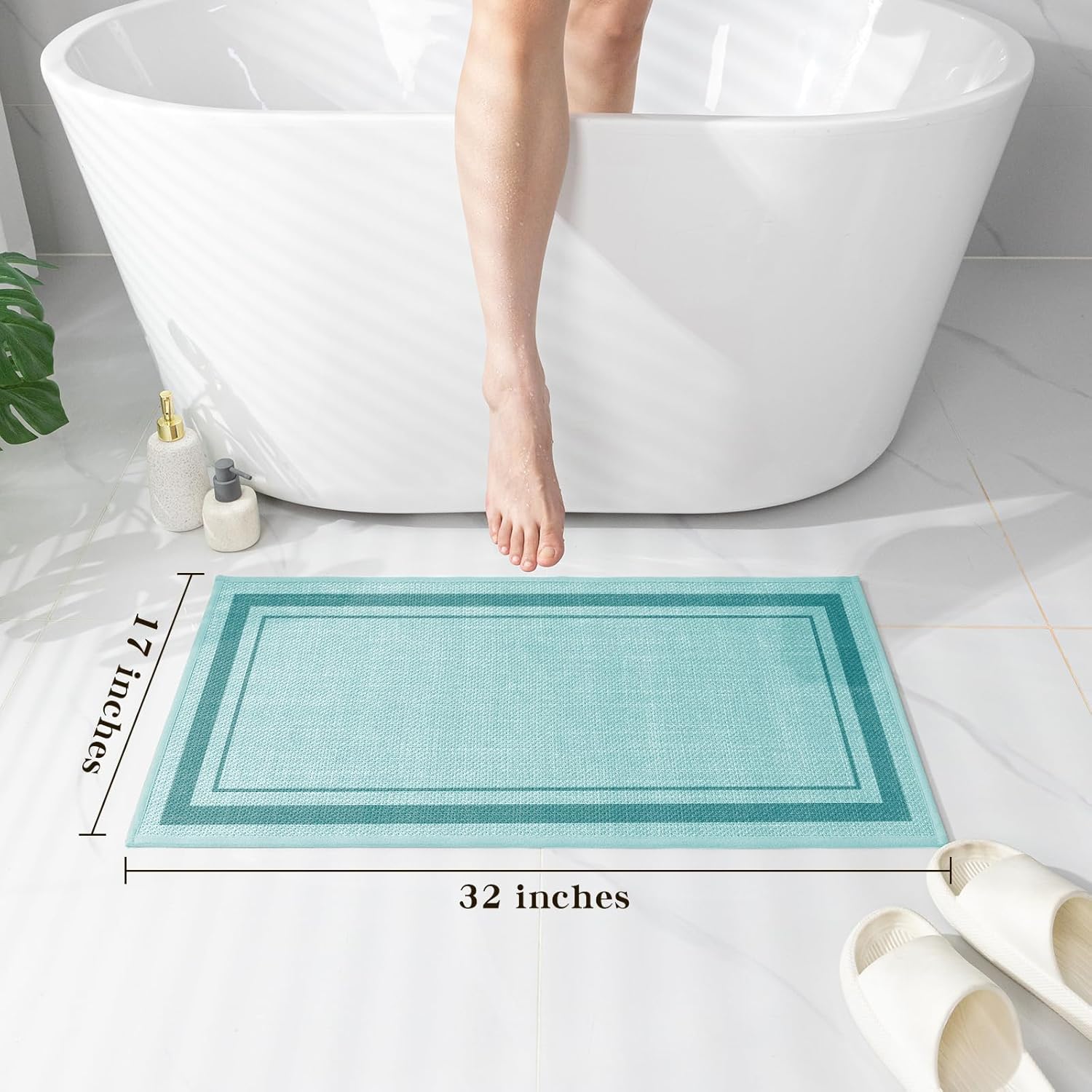 - 【Absorbing & Quick Drying】bathroom mat quick dry made of absorbent fabric that designed to dry quickly, absorbent bath mat can suck up dripping water quickly when you come out from bathtub or shower, and our fabric technique allows the rug to dry fast in the open air, bring you a dry and comfortable bathroom