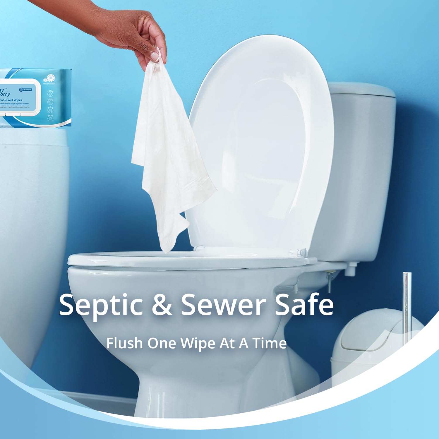 - GENTLE FORMULA FOR ALL SKIN: Made with 99% pure water and enriched with Chamomile and Vitamin E, Why Worry flushable wipes are plastic-free, latex-free, alcohol-free and pH-balanced. These plant-based and hypoallergenic wipes are safe for all skin types, making them not only perfect for bathroom use but also ideal for daily body cleansing and hygiene purposes.