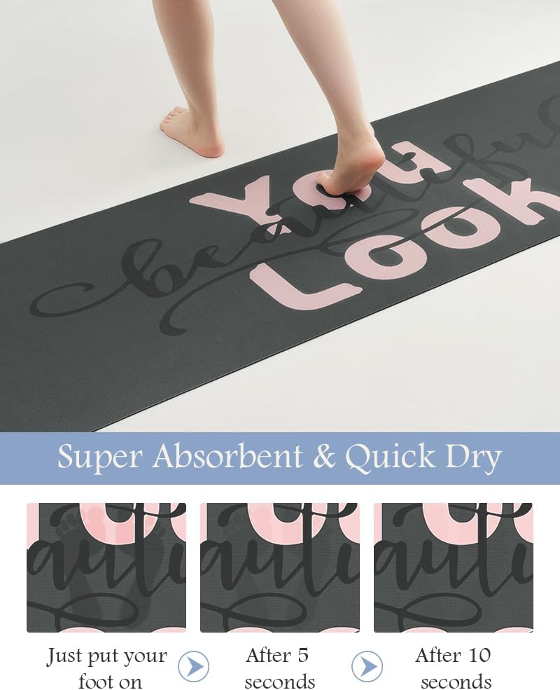 - Absorbent & Stain Resistant: Its specially engineered nano-porous smooth surface instantly absorbs dripping water, leaving no conspicuous watermarks or stains. Whether stepping out of the shower or washing your hands, you can trust this super absorbent bath mat to keep your space clean and safe.