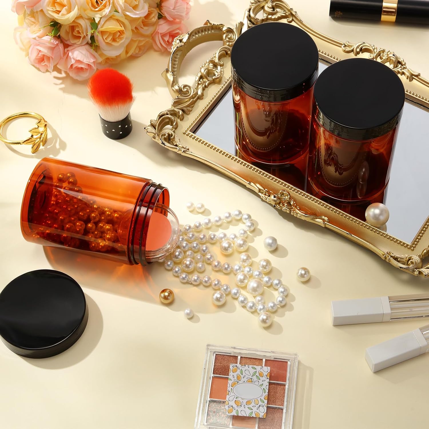 SATINIOR 24 Pieces Empty Clear Plastic Jars with Lids Round Storage Containers Wide Mouth for Beauty Product Cosmetic Cream Lotion Liquid Butter Craft and Food(Amber Lid,10 oz)