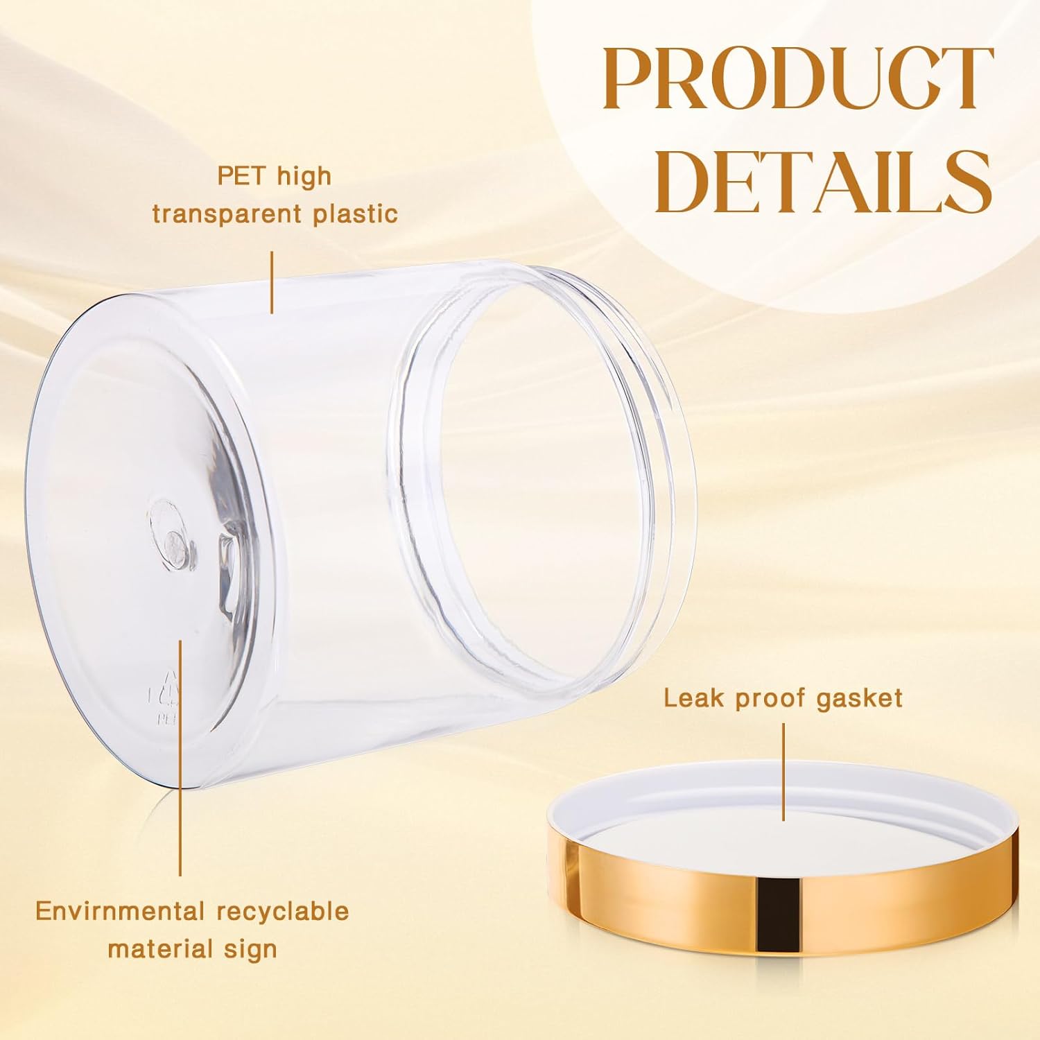 SATINIOR 24 Pieces Empty Clear Plastic Jars with Lids Round Storage Containers Wide Mouth for Beauty Product Cosmetic Cream Lotion Liquid Butter Craft and Food(Gold Lid,16 oz)