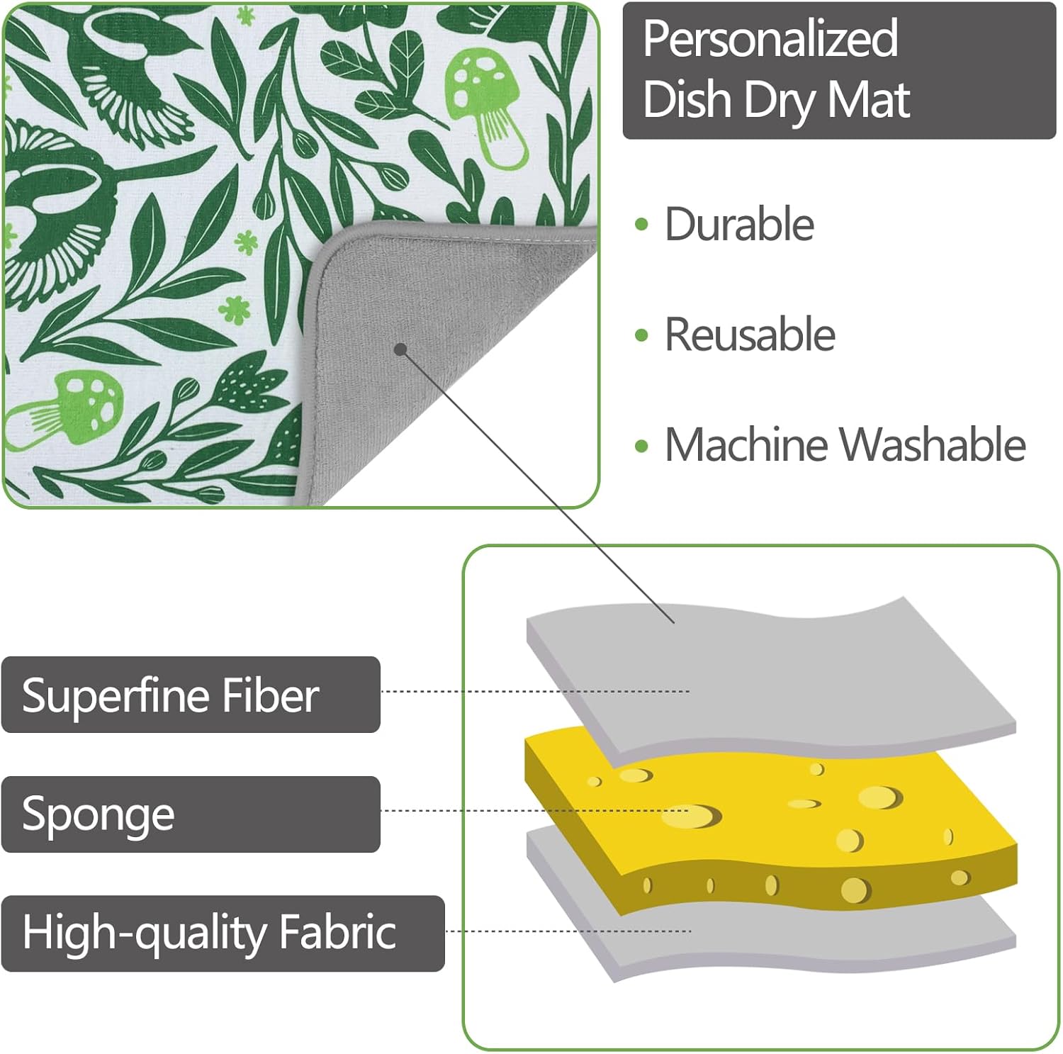 - ๐ CREATIVITY AND STRONG ABSORPTION: can't stand wet dishes and dry mats? Buy one of our dish mat drying kitchen mat. microfiber dish drying mat, the surface can quickly absorb water 2-4 times its own weight. Help your crockery and tableware dry faster and more hygienically, and keep the table completely dry