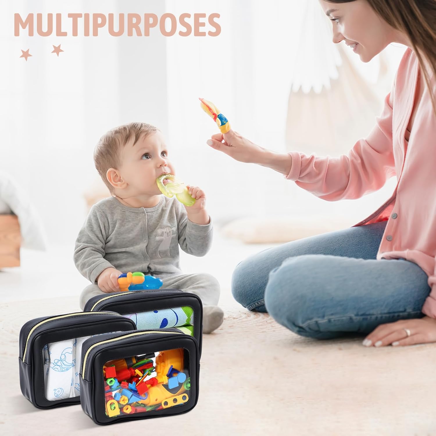3PCS Diaper Bag Organizer Pouch Set, TSA Approved Toiletry Bag,Clear Waterproof TPU Makeup Bag Set Travel Organizer Bags for Women and Kids