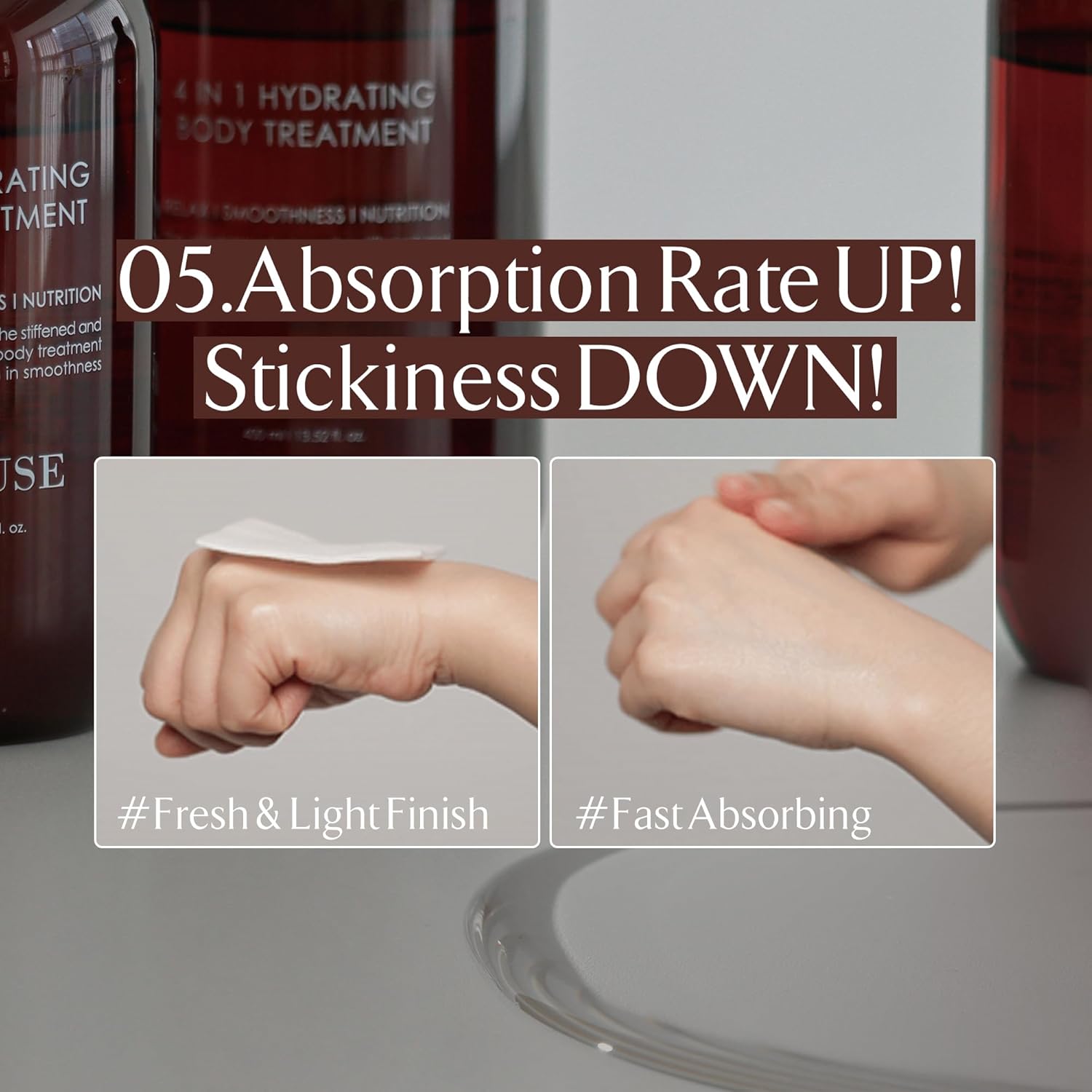 - 1. DEEP HYDRATION & MOISTURE BARRIER: The 4-in-1 Hydrating Body Treatment is enriched with natural oils like jojoba, macadamia, and olive, forming a protective moisture barrier that deeply nourishes and softens the skin.