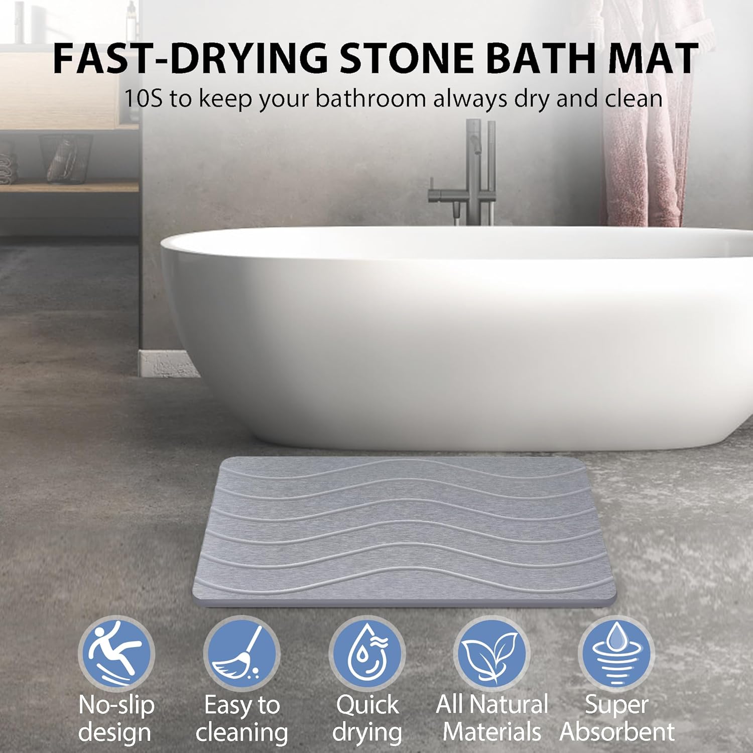 - 【Fast Drying & Super Absorbent】Our stone bath mats are designed with strong water absorption and instant drying capabilities, ensuring your feet dry quickly and maintaining a dry and tidy bathroom space.