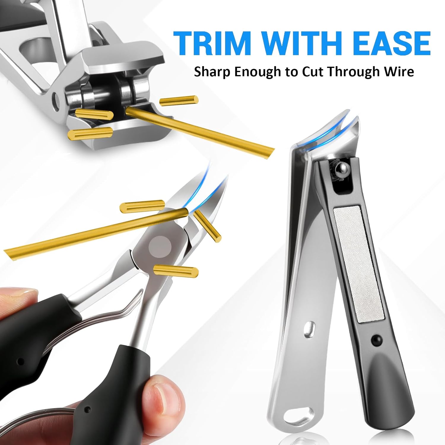 - COMPLETE NAIL CARE SOLUTION: This versatile fingernail & toenail clippers set includes all the essential tools for men, women, and especially seniors, to handle thick toenails, ingrown nails, and cuticles at home. Avoid costly salon visits and achieve professional-grade results with ease. A perfect choice for daily grooming or as a thoughtful gift for family and friends