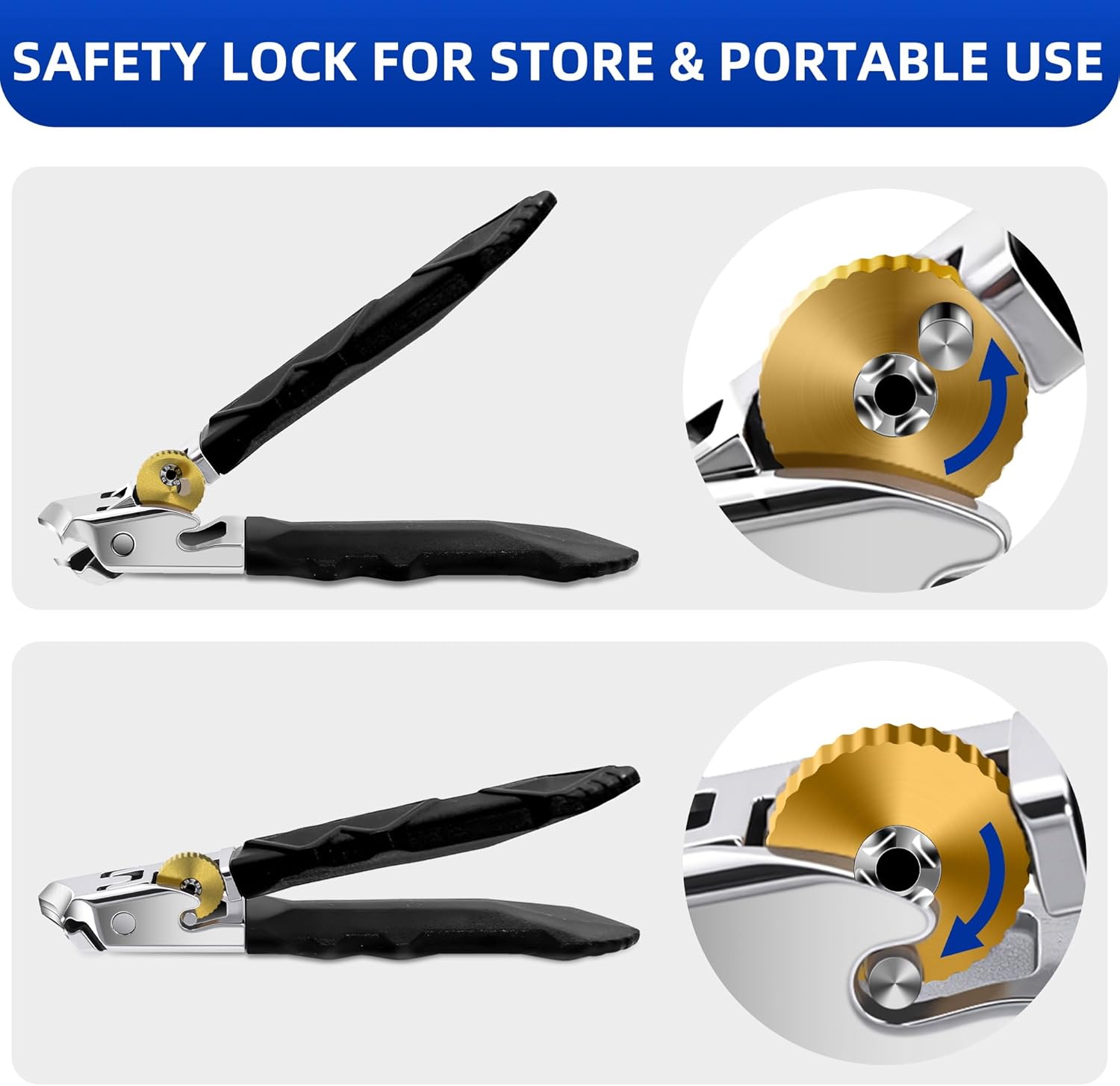 - SAFE & CLEAN TRIMMING – These mens toe nail clippers feature a anti-splash catcher to keep your space tidy. A secure safety lock keeps blades closed when not in use—perfect for safe storage and travel