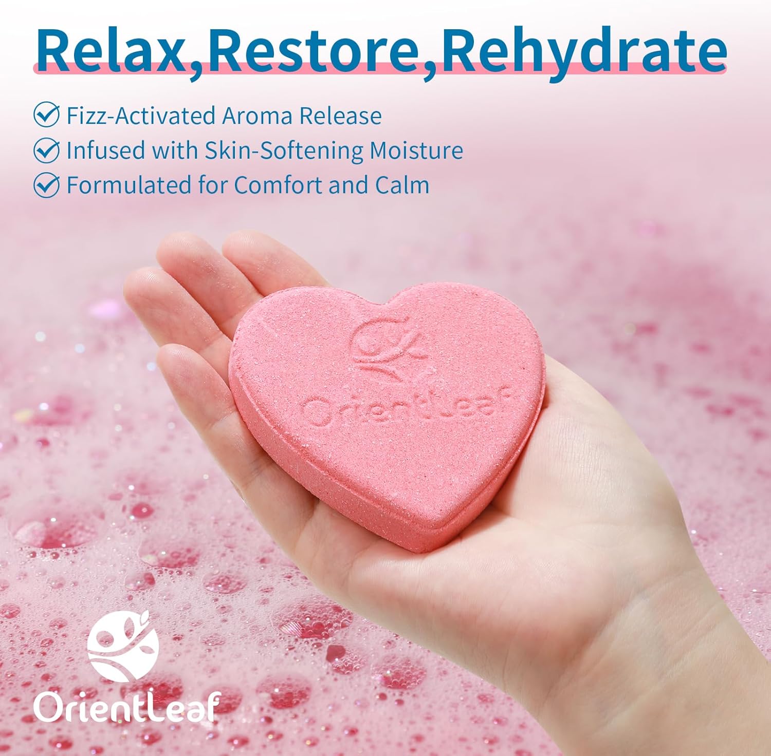 - Refreshing Fruit Scents: Set of 6 heart shaped bath bombs with strawberry, orange, and coconut aromas for an uplifting bathing experience