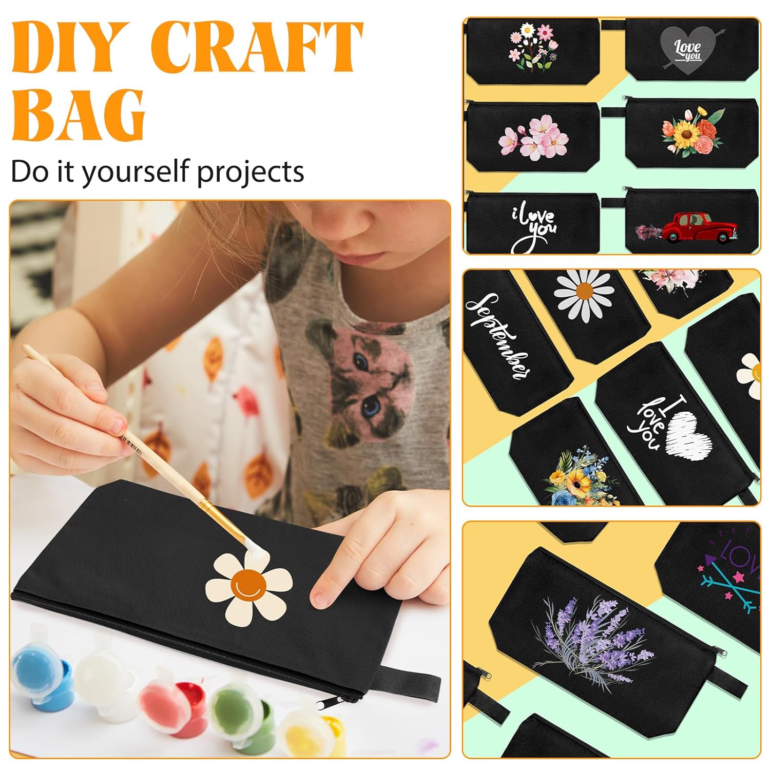 Saintrygo 30 Pcs Makeup Bag Travel Canvas Cosmetic Bag Bulk Multipurpose Small Makeup Pouch for Purse Portable Blank Zipper Toiletry Organizer DIY for Women Assorted Color (Black,9.8 x 5 x 2 Inch)
