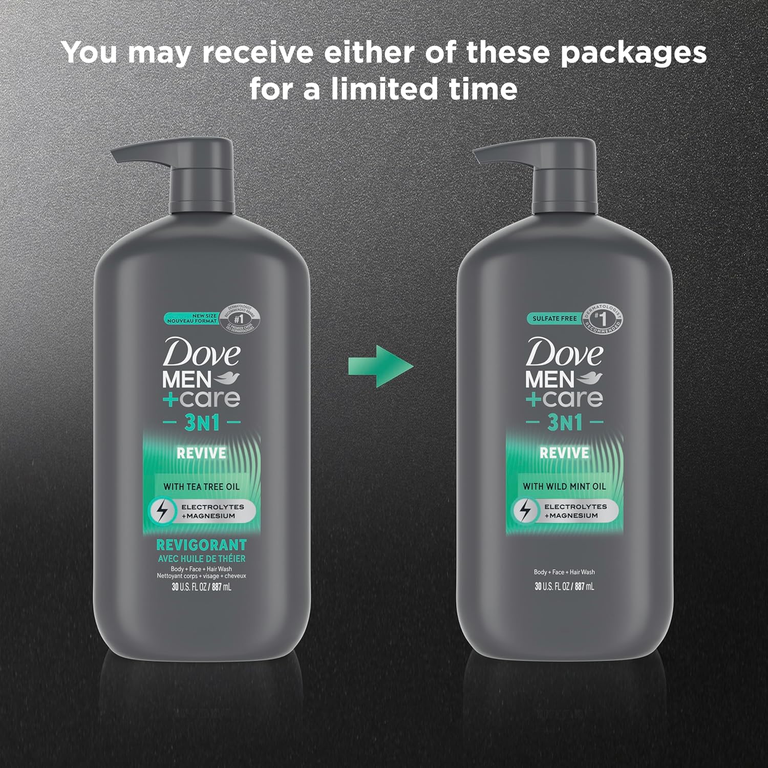 DOVE MEN + CARE Body and Face Wash Invigorating Revive 3N1 with Tea Tree Oil, with 24-Hour Nourishing Micromoisture Technology, 30 oz
