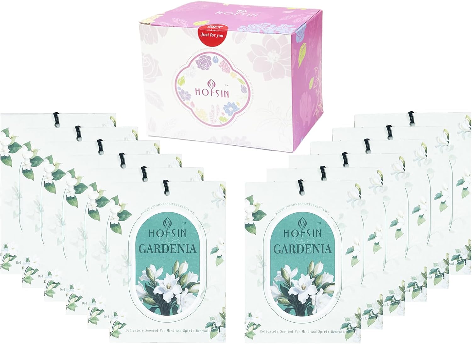 12 Packs Fragrance Bags with Hanging Strings, Air Freshener Deodorizer for Closet and Drawer,6 Scents Option- Lavender,Magnolia,Jasmine,Rose,Osmanthus,Gardenia (Gardenia)