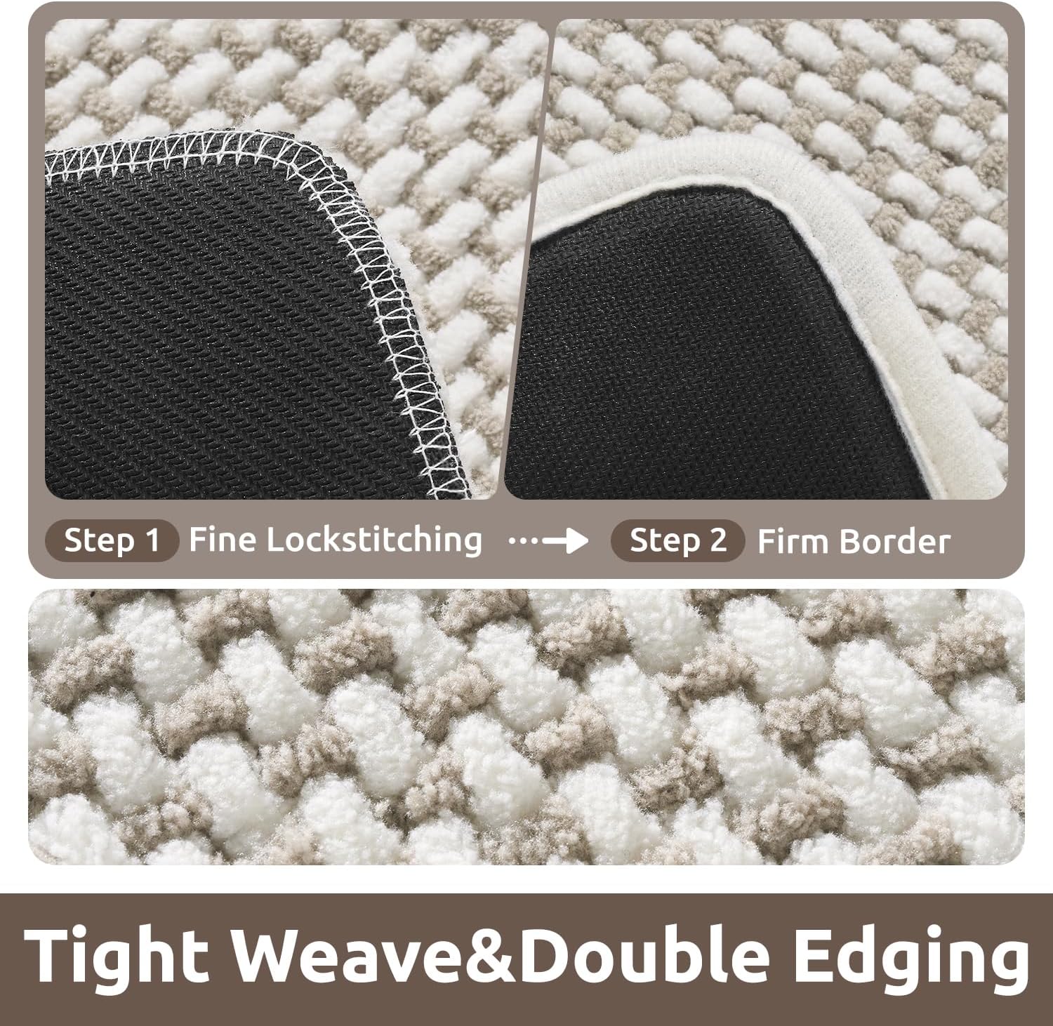 AMOAMI Chenille Bath Mat Super Absorbent Bathroom Mat Quick Dry Bath Mats for Bathroom Rubber Backed Bathroom Rugs Non Slip Washable Fit Under Door, Front of Bathtub, Sink, Beige&White 17"x24"