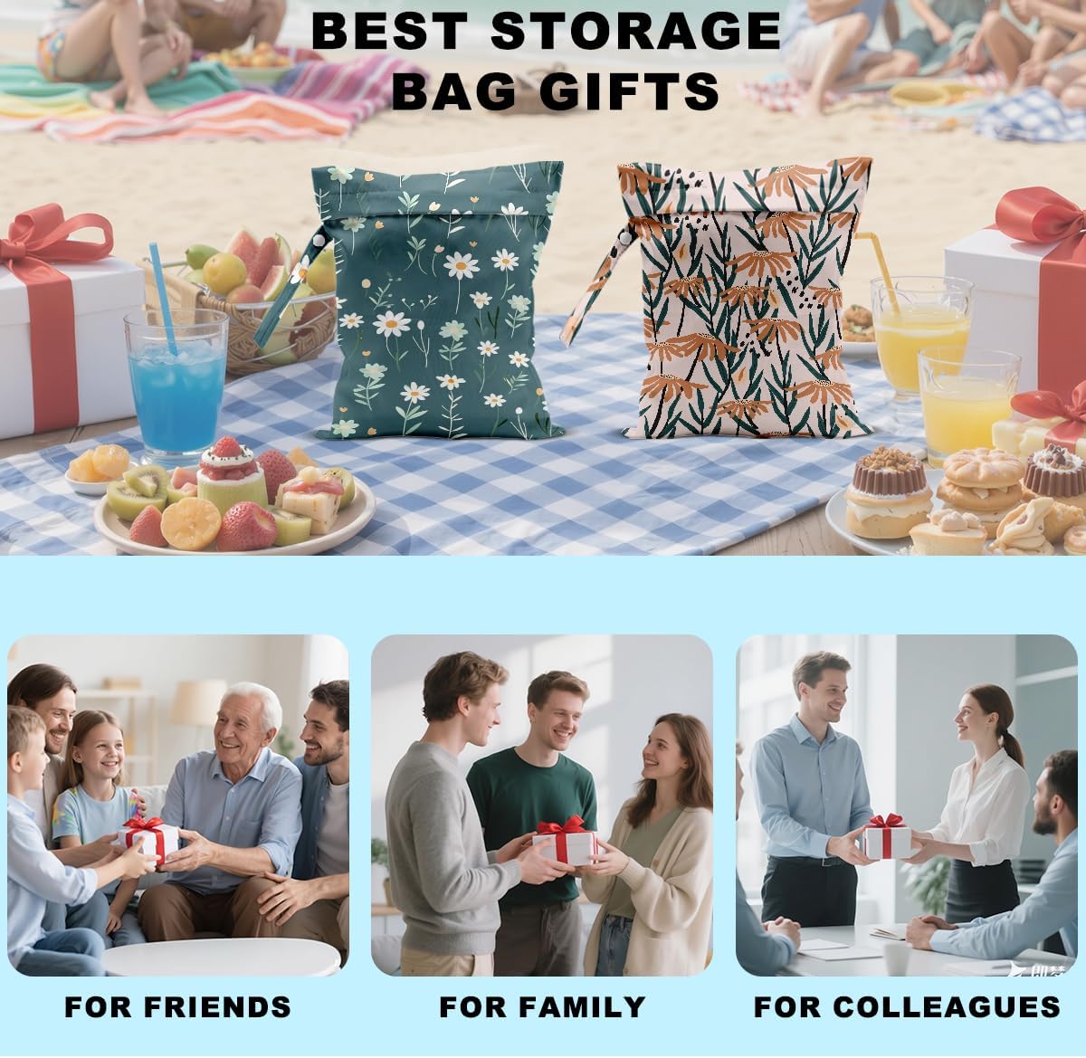 2Pcs Wild Flower Wet Bag 12x10 Inch, Daisy Waterproof Travel Laundry Bags, Floral Washable Reusable Wet Dry Bag for Swimsuit Pool Beach Diapers Dirty Yoga Gym Clothes, Flowers Gifts for Women Friend
