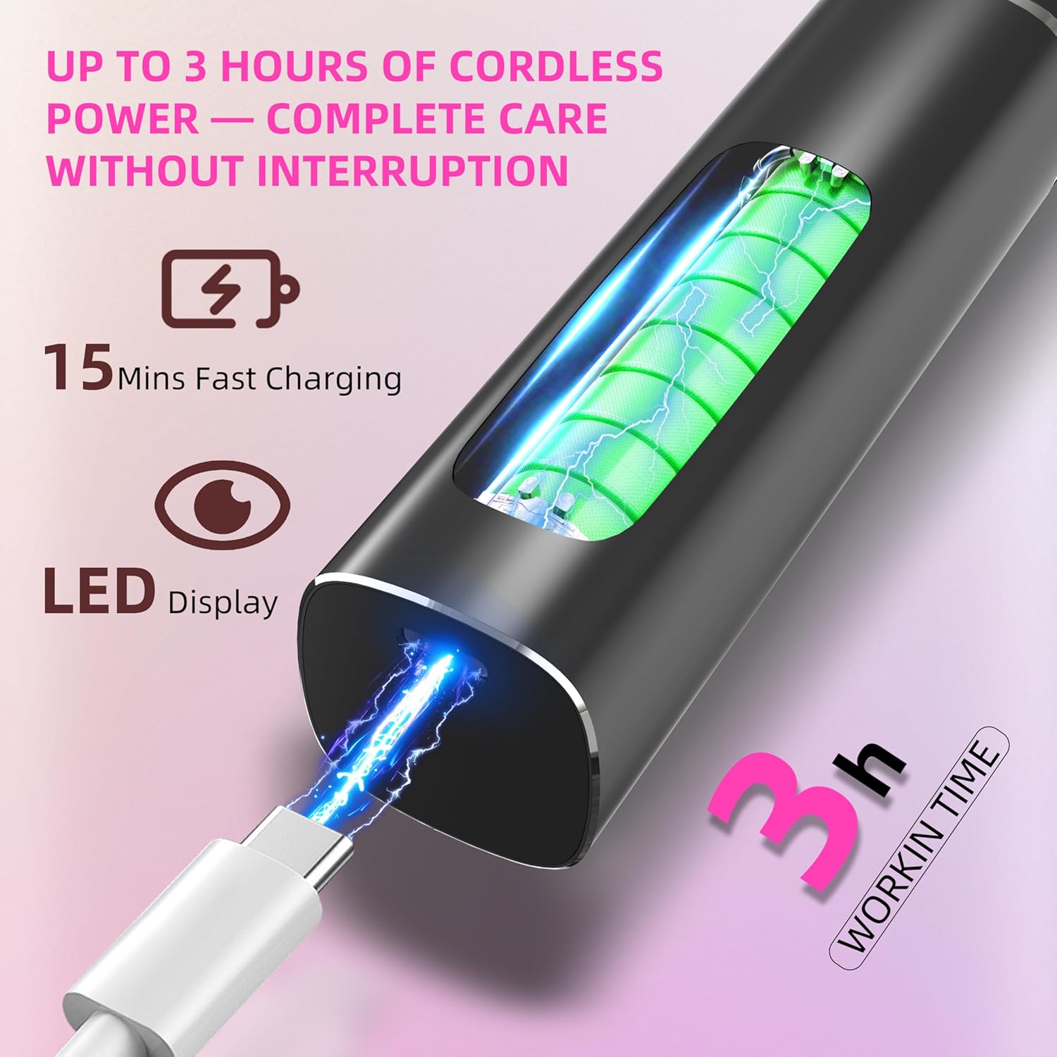 - One-Touch Pause/Resume Function: The foot smoother features a pause function for added convenience. When you need to briefly pause your session—whether to adjust your posture, check smoothing results, answer a call, or switch feet—there’s no need to power off the device, restart it, or reselect your settings. Simply press the button again to instantly resume operation. This design streamlines your routine, saving time and minimizing unnecessary steps while enhancing efficiency