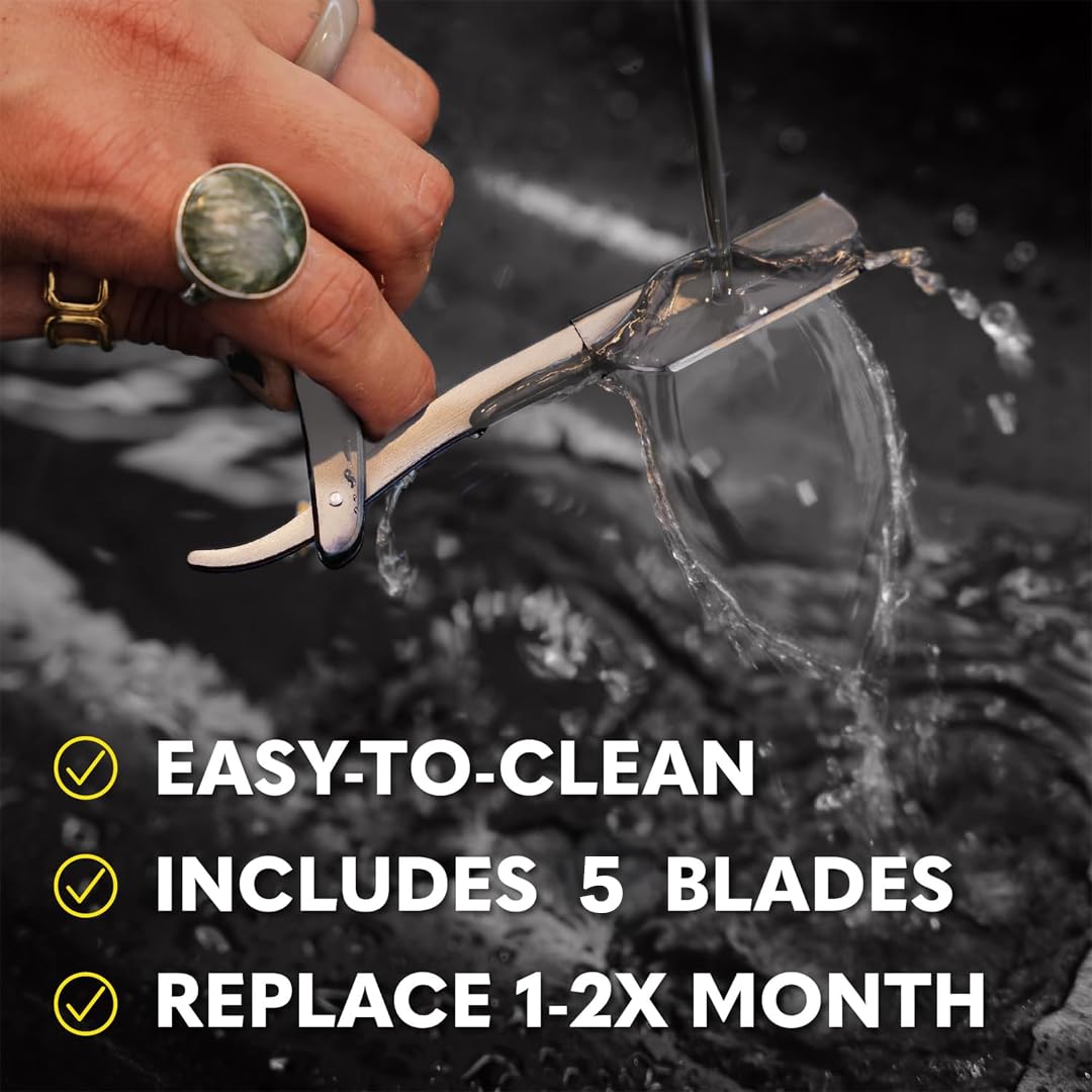 - All-in-One Straight Razor Kit - Our straight edge razor kit includes 5 stainless steel replaceable blades, guaranteeing a consistently sharp shave