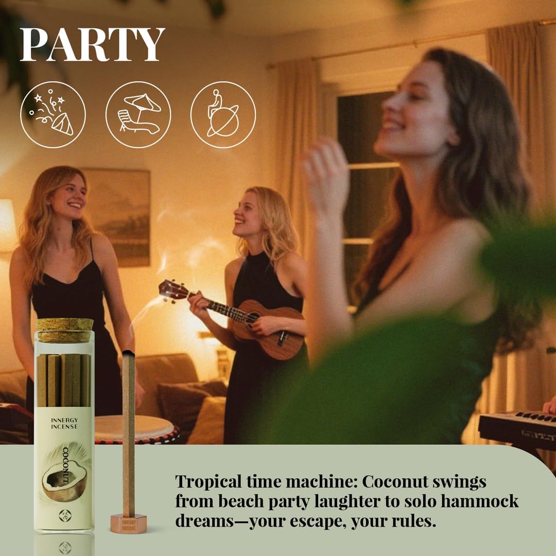 Refresh & Relax - Innergy Coconut Incense Sticks, Natural Tropical Summer Vacation Incense