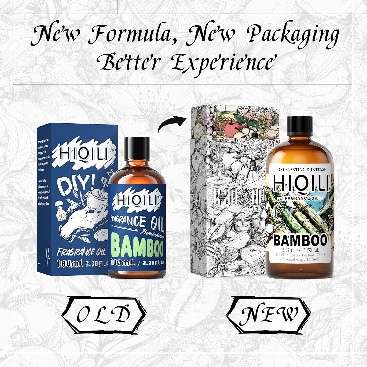 HIQILI Bamboo Fragrance Oil for Scent Diffuser, Idea for Candle & Soap Making, DIY Room Air Fresheners, New Car Scent - 5.07 Fl Oz