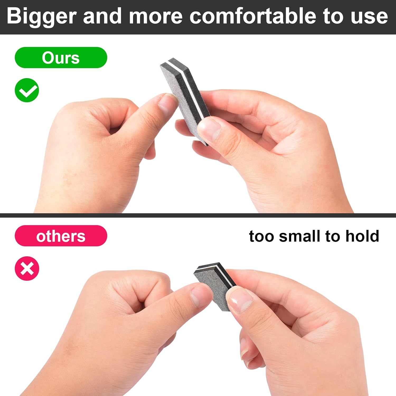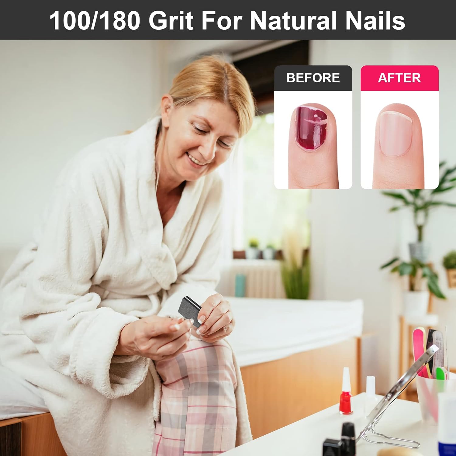 - 【Double Sided Nail Buffer Block】 - The most comfortable scrub is 100/180, 100 is used to polish hard nails and toenails, 180 makes their edges smooth, suitable for professional nail shops and home use, This Nail File Block can quickly trim and shape the nails with your desired shape or length. Also they can remove nail gel in your extended or fake nails