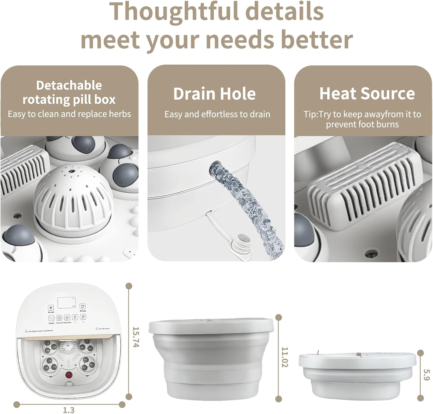 - Amazingly Foldable: It can be folded easily in two seconds with no tool required. Only 5.98 inches tall when folded, the foot spa can be stowed under a table or sofa to save space.
