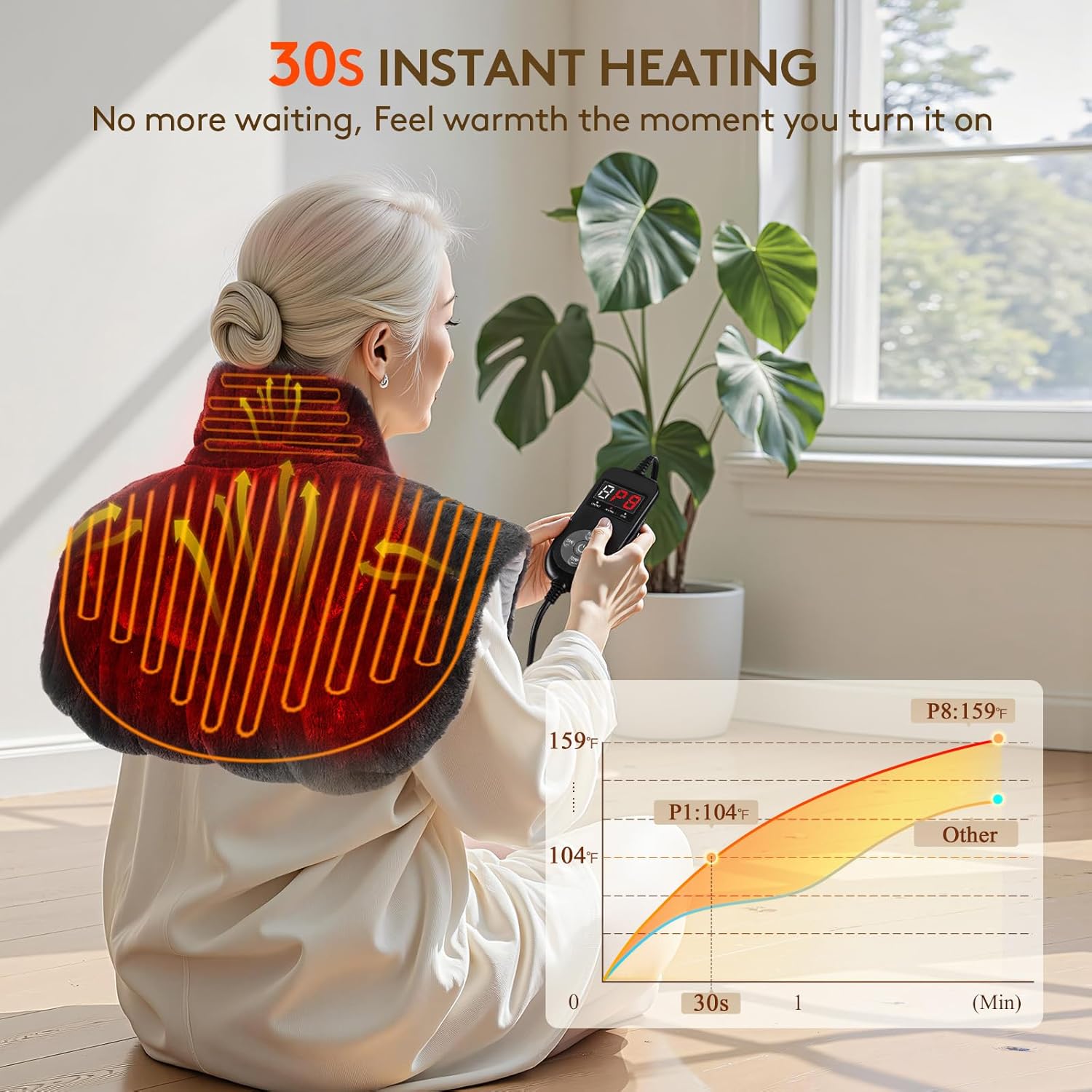 30S Fast Heating Pad for Neck and Shoulders, 6X Deeper Pain Relief, Weighted Far Infrared Heat pad, 24"X20" Extra Large, Faux Rabbit Fur Fabric, 4H Auto Off,Memory Function, Gifts for Birthday