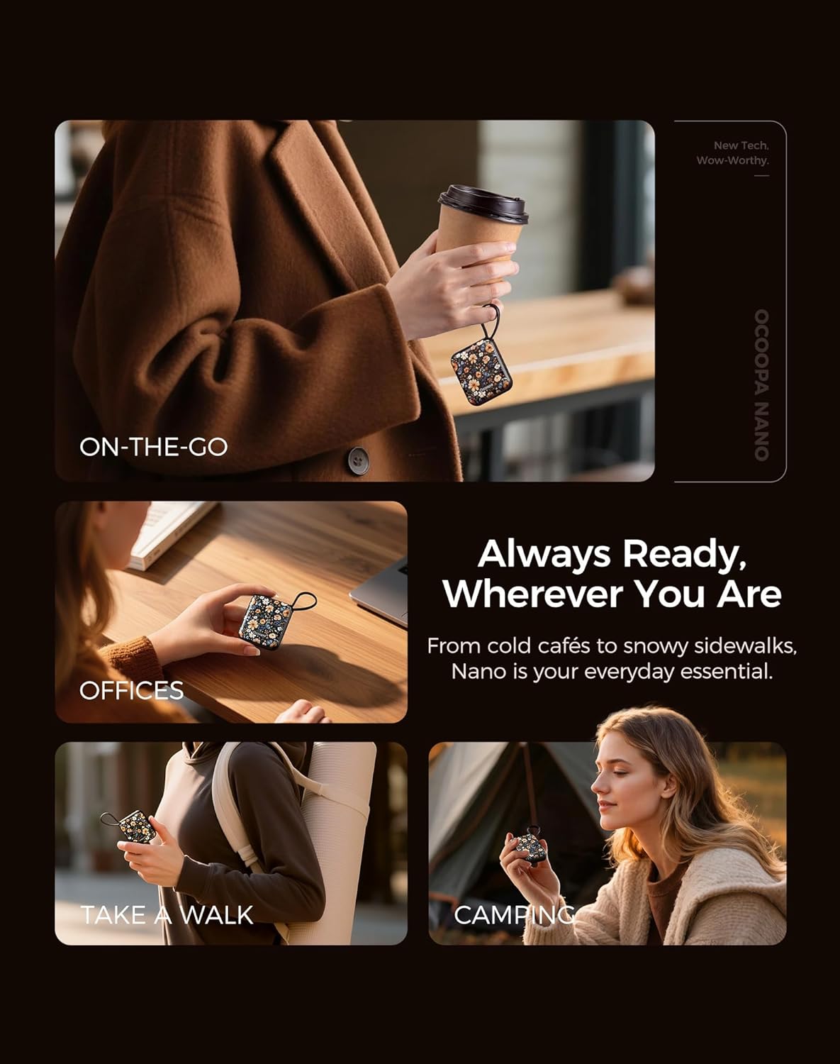 - Ocoopa x Artist in bloom: Stylish and durable finish Unique embossed texture offers a premium tactile feel; tested for durability to resist scratches and daily use; a functional warmer and a fashion accessory; perfect for gifting with both beauty and practicality combined