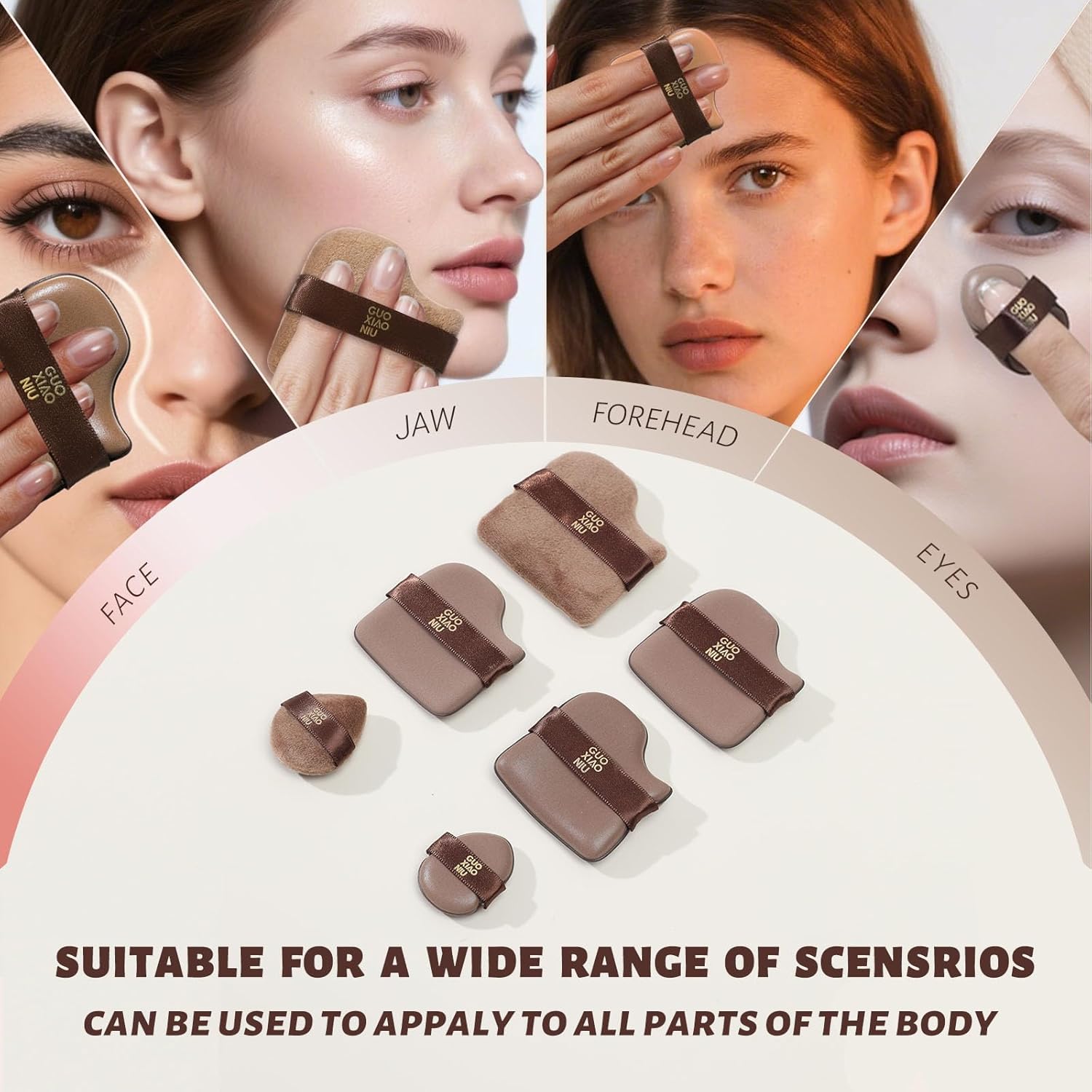 - Meet Diverse makeup Needs: The Air Cushion powder puff is specially designed for foundation to create a light, thin and bright makeup effect. The leather powder puff is suitable for powder cream, It is ideal for oily skin or autumn and winter makeup looks. Velour powder puff can absorb excess oil and Prolong the durability of makeup. The fingertip mini powder puff is suitable for local concealing and setting makeup.