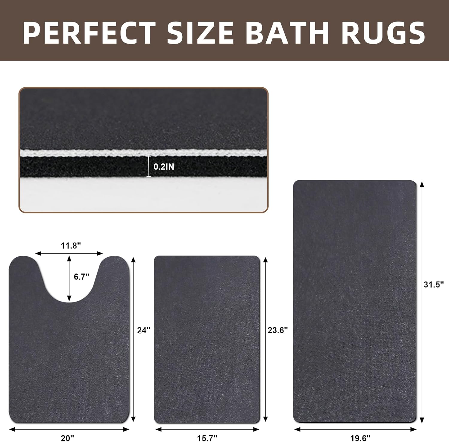 Diatomaceous earth bath mat Bathroom Rugs Sets 3 Piece Super Absorbent Quick Dry Bath Mats, Rubber Non Slip Shower Mat and Toilet Mat U Shape, Shower Rug for in Front of Bathtub Shower, Dark Grey