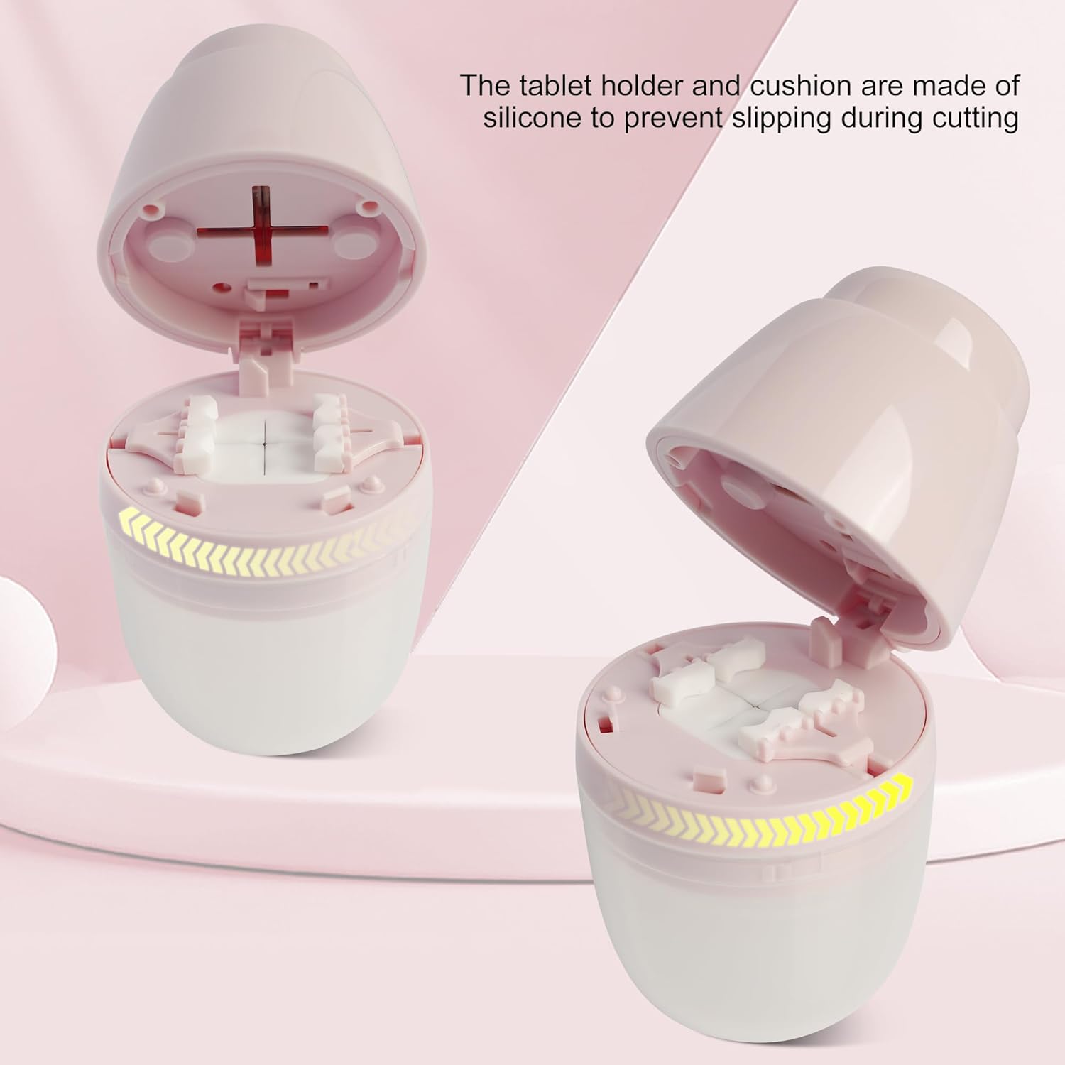 - 【Accurate and splitting】Features cross-shaped stainless steel blades on both top and bottom for enhanced cutting precision. The hidden dual-blade design ensures safety—when the pill splitter is open, the blades remain locked, and the top cover cannot be pressed down. The holder and cushion are made of silicone to prevent slipping during cutting, ensuring accurate splits.