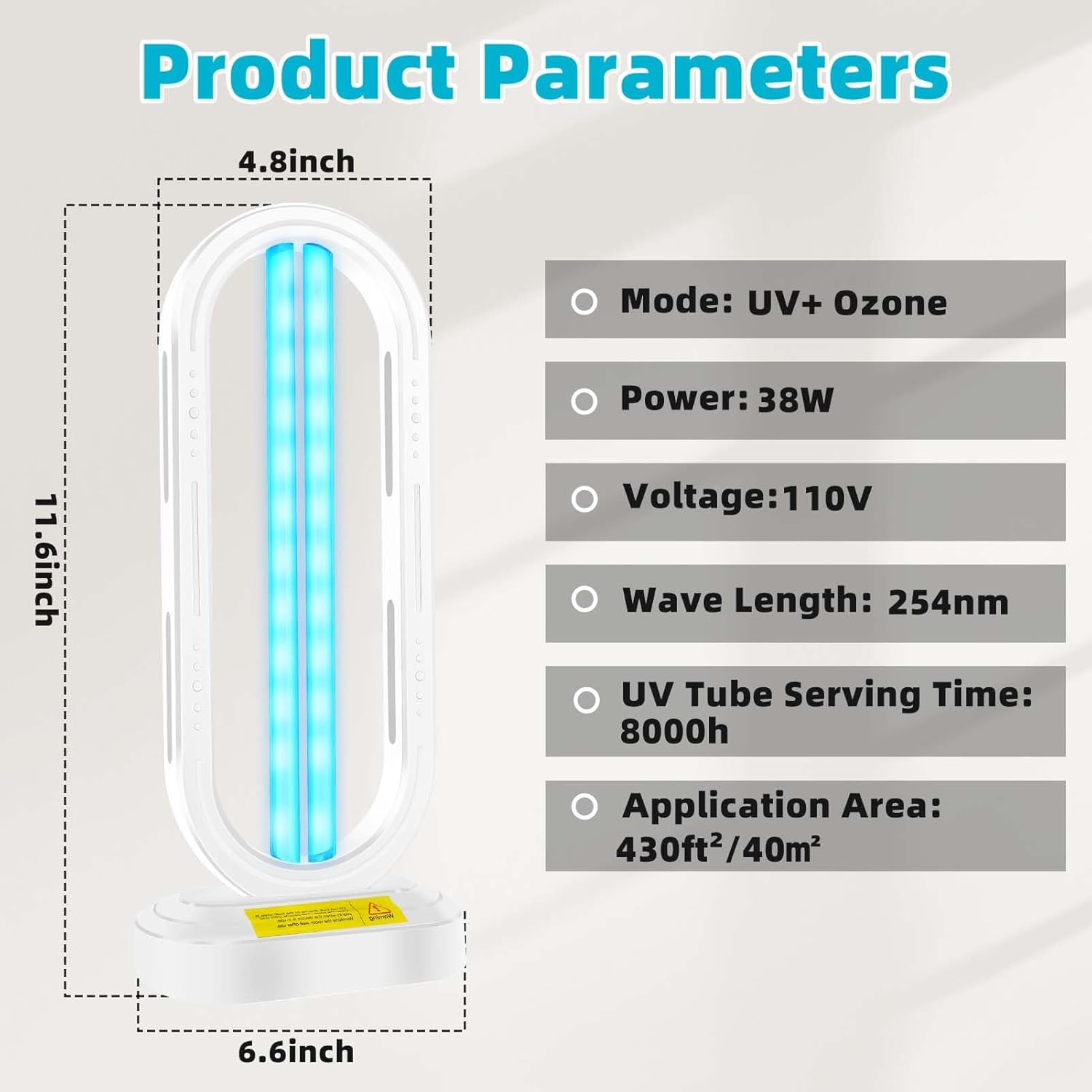- Note: When the device is working, please stay away from the UV Light (no people or animals are allowed to be present.) Ozone is generated during use, Ventilate the room for 30 to 60 minutes after the appliance has finished working before entering the room.
