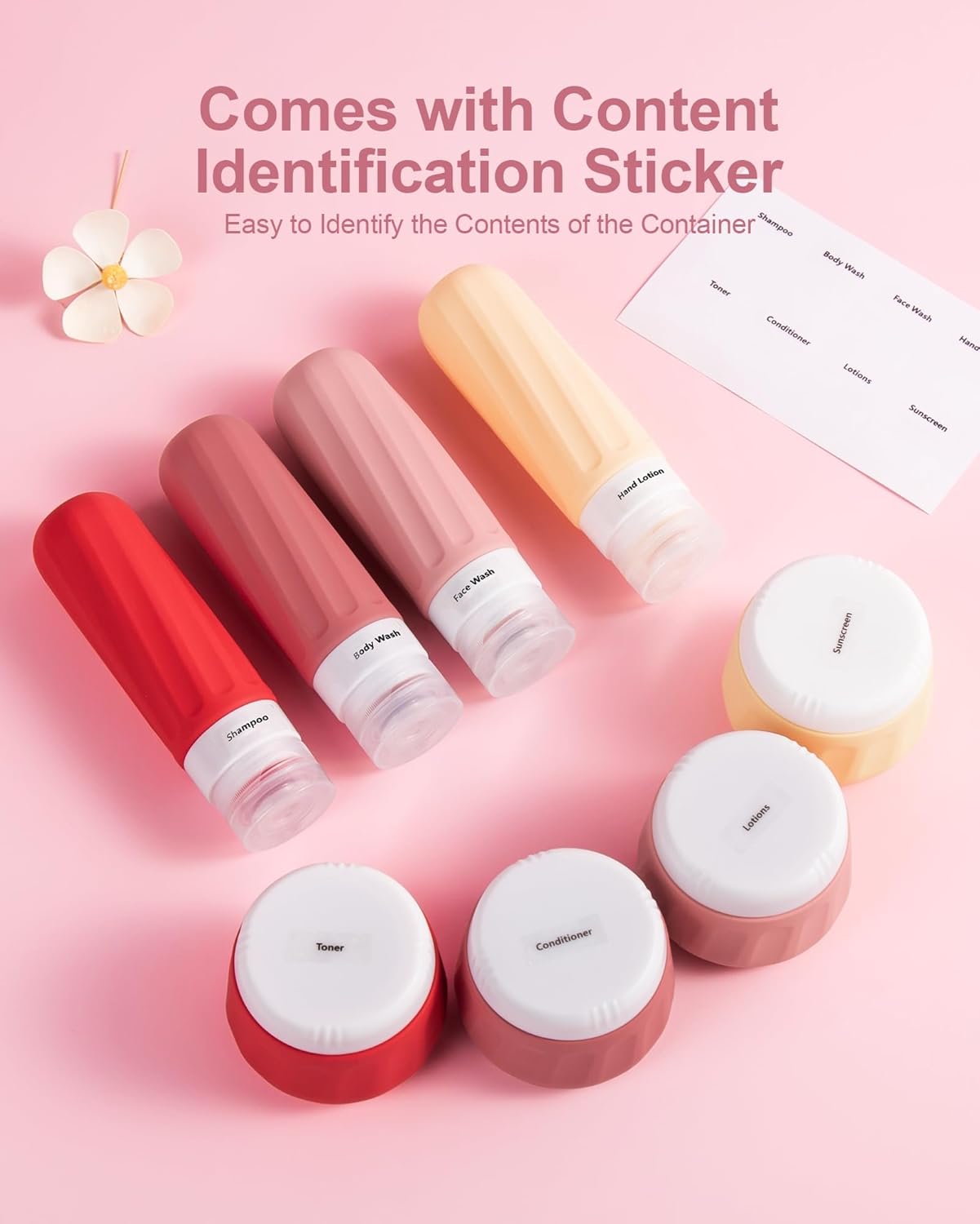 Travel Bottles for Toiletries 8 Pack, Travel Size Toiletries, Tsa Approved Travel Size Containers 3oz, with Travel Essentials Clear Bag, Leak Proof Silicone Squeezable Creams Jars