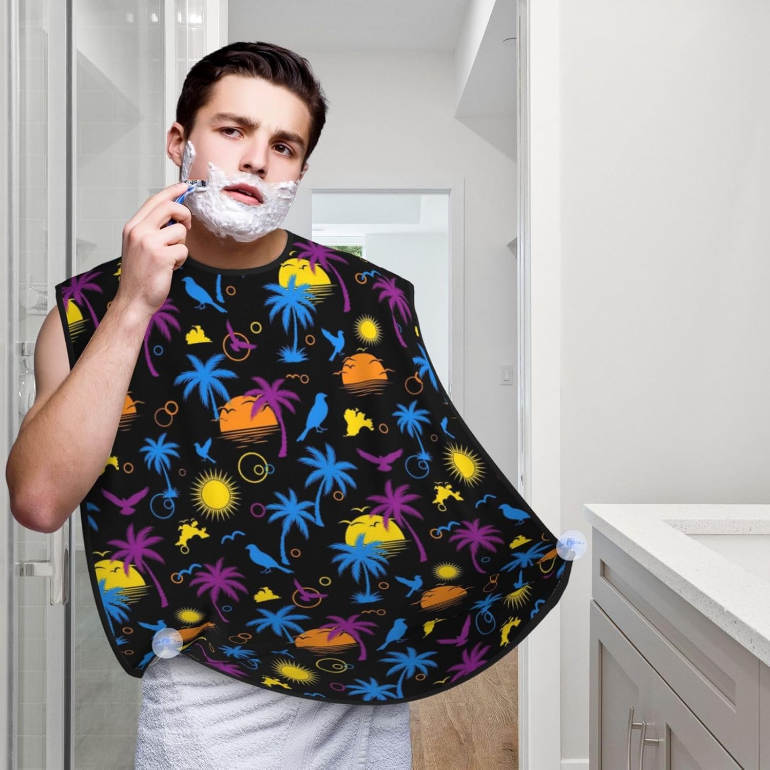 Waterproof Beard Grooming Bib, Tropical Palm Tree Beach Sun Art Shave Bib, Non-Stick Hair Catcher for Shaving Trimming, Apron Essential for Men Dad
