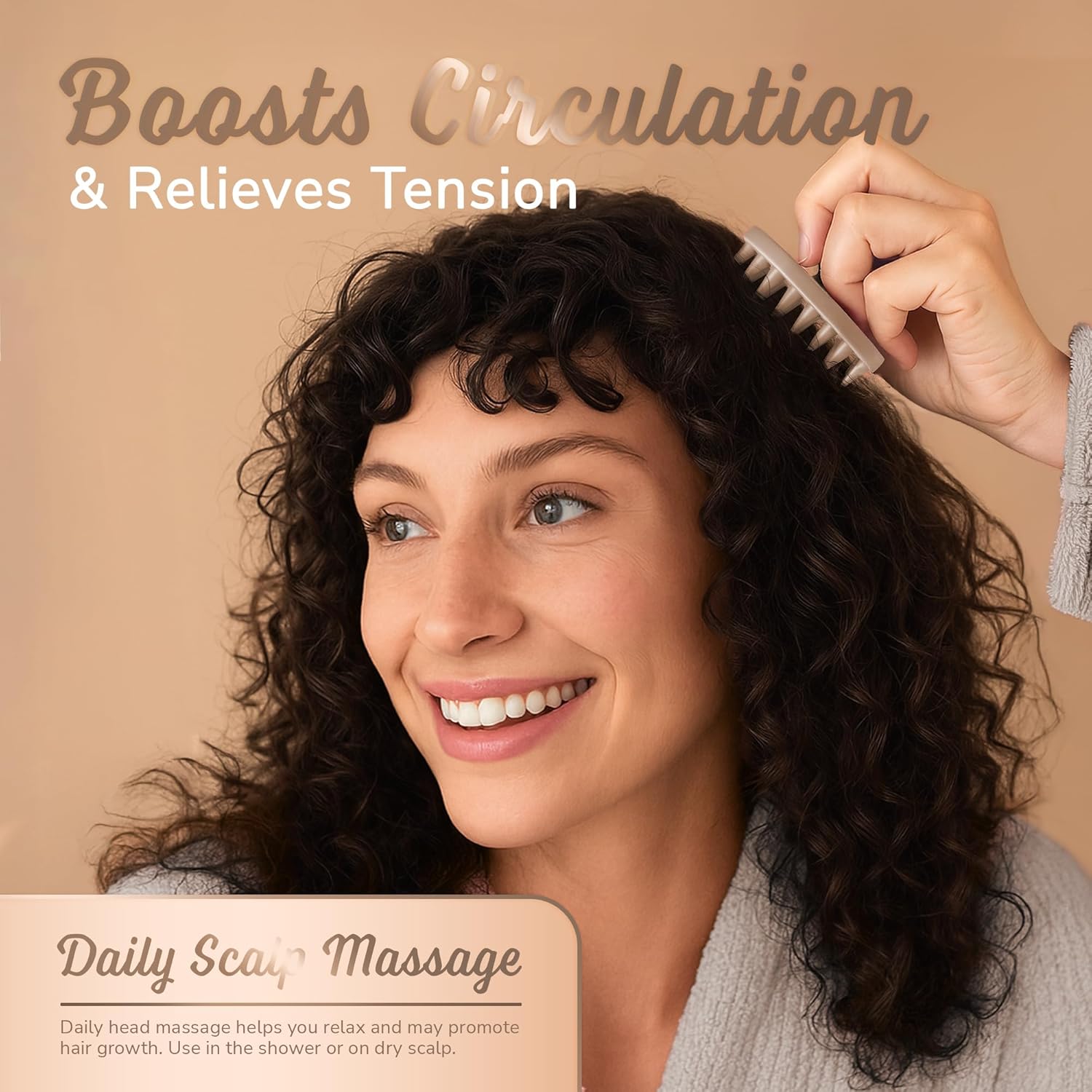 - Non-slip ergonomic handle for easy control — a balanced, palm-fitting grip stays steady in wet, soapy hands and works with either hand, giving you a relaxed, consistent scalp massage every time.