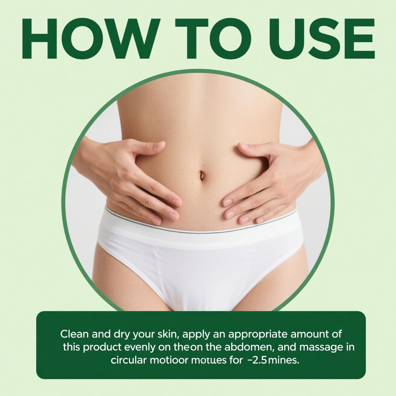 - 【How to Use】Clean and dry your skin, apply an appropriate amount of this product evenly on theon the abdomen, and massage in circular motioor motues for -2.5 mines.