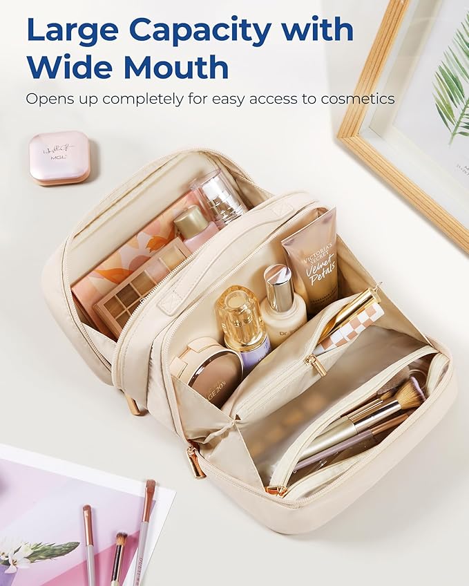 - 【Versatility】With an elegant and charming appearance and available in 3 colours, this large makeup bag serves not only as a travel companion but also as a versatile toiletry bag, travel wallet, tech accessory organizer, travel accessory bag, or daily storage pouch. These cosmetic bags for women are perfect gifts for Women's Day, Valentine's Day, birthdays, anniversaries, Mother's Day, and other holidays.