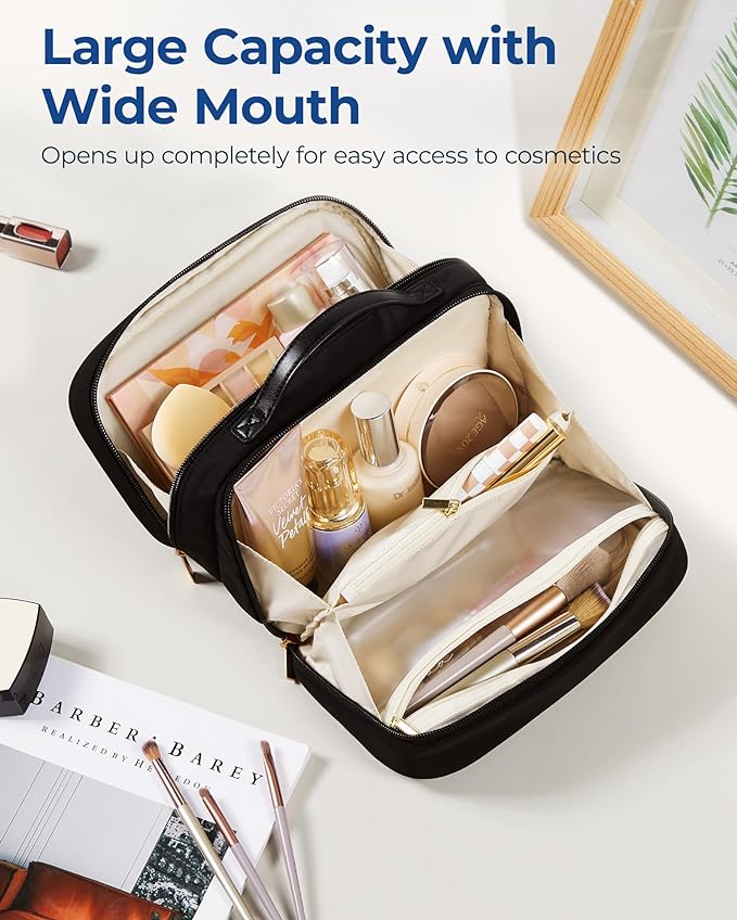 - 【Versatility】With an elegant and charming appearance and available in 5 colours, this large makeup bag serves not only as a travel companion but also as a versatile toiletry bag, travel wallet, tech accessory organizer, travel accessory bag, or daily storage pouch. These cosmetic bags for women are perfect gifts for Women's Day, Valentine's Day, birthdays, anniversaries, Mother's Day, and other holidays.