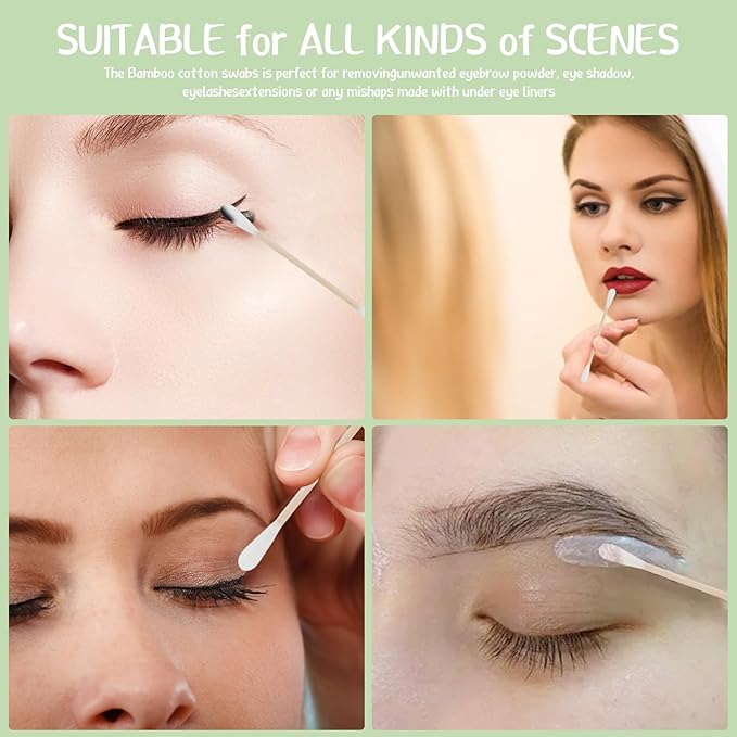 - Bamboo Cotton swabs: Used to remove extra eyeliner ,eyebrow,eyeshadow and makeup as a makeup remover cleansing brush of eye.Play a important role on makeup removing . Safe and clean make you take it easy to clean the dirty and dust.Also can be applied for cleaning machine like the lens of camera and VCR heads.