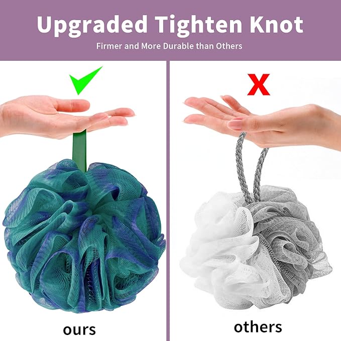 - The Dense and fluffy mesh structure of the bath sponge creates a rich lather with very little body wash or soap, also save more shower gel or soap.