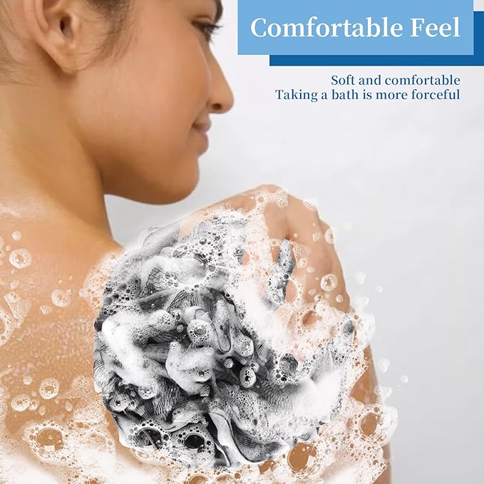 - The Dense and fluffy mesh structure of the bath sponge creates a rich lather with very little body wash or soap, also save more shower gel or soap.