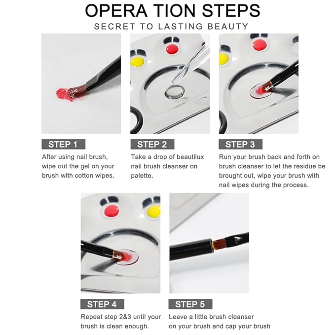- How to use: Pour the appropriate brush cleaner into a glass, dip the brush bristles into the product for a moment, then swirl 3-5 times and rinse within a minute to restore the brush to its original suppleness.
