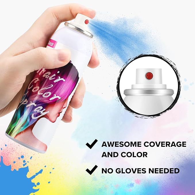 - Fun Temporary Hair Color Spray - The Hair Color Spray will give you bold, temporary wash-out hair color without any commitment. The spray is formulated without any bleach and allows vivid temporary color to all hair types. The spray is a quick hair color solution and is easy to use. It is gentle on hair and washes out after just one day of wear. The spray comes in 6 different shades in our store
