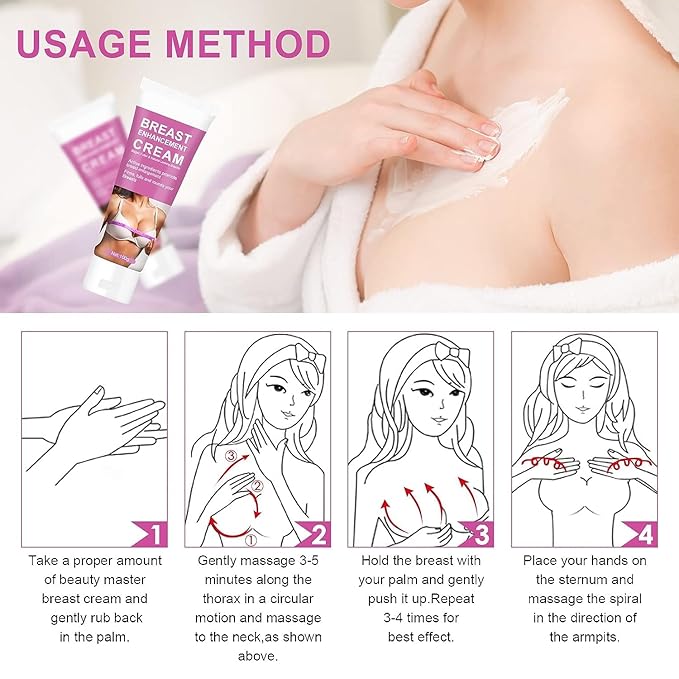 - 【Easy to Use】Just need to apply the cream on the breasts, massage the breasts until the cream is absorbed. (Slight burning and tingling are normal physiological reactions, you can continue to use)