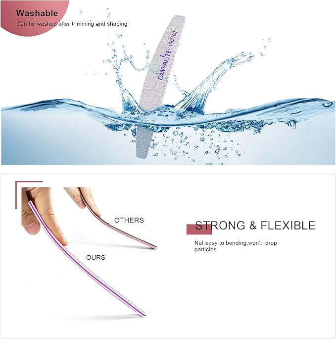 - Perfect Nail File Size - Half-moon shaped 100 grit nail files for easy hold and comfortable use. Keep the nails beautiful all the time!