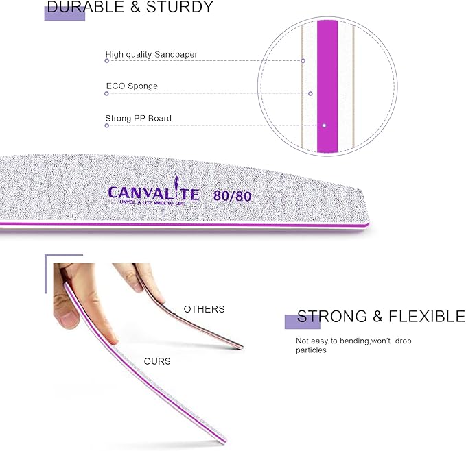 - Perfect Nail File Size - Half-moon shaped 80 grit nail files for easy hold and comfortable use. Keep the nails beautiful all the time!