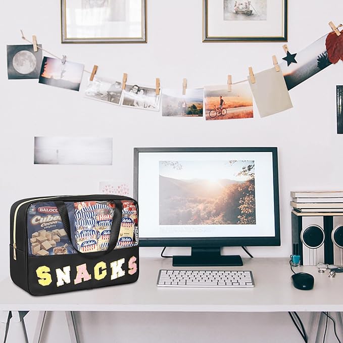 - 【Portable Size】The chenille letter snacks bag is the right size and easy to carry. The wide design has a large storage capacity, making it ideal to fit in backpacks, travel cases, suitcases, luggage to keep your belongings separate and organized