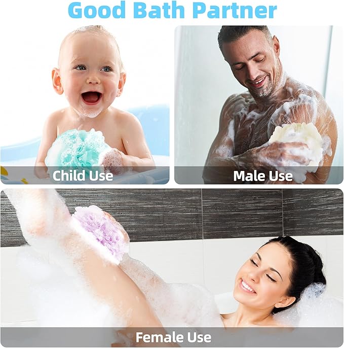 - Good bath partner:Dense mesh, bubble production is fast and many! The structure of the bath sponge is dense and fluffy. When you use a small amount of body wash or soap on bath sponges for shower, you can create a rich foam. Soft mesh, skin care